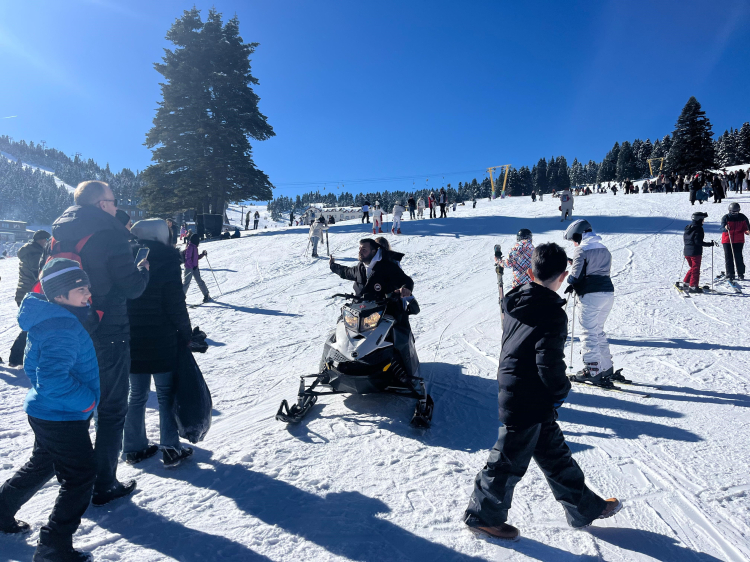Yarı yıl tatilinin başlamasıyla binlerce kişi Uludağ'a akın etti. Kayak yapanlar, acemiler, kızak kayanlar, poşetle kayanlar ve yürüyüş yapanlar aynı pistte buluşunca "kaza geliyorum" dedi.