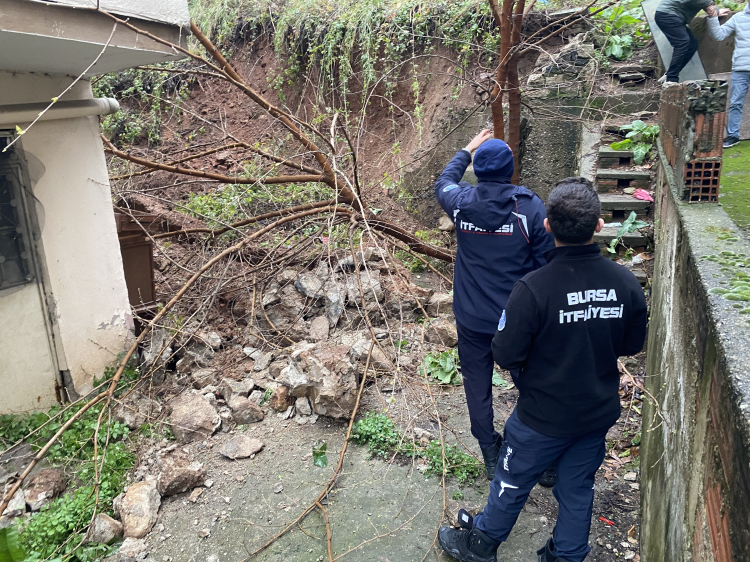 Aralıksız devam eden yağışlar Osmangazi’de tehlike saçtı. Çöken duvarın ardından ekipler bölgede inceleme başlattı. Can kaybı yaşanmaması teselli oldu.
