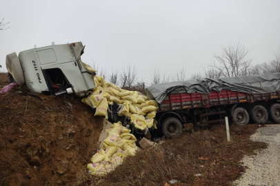 Yem yüklü tır yoldan çıktı: 2 yaralı