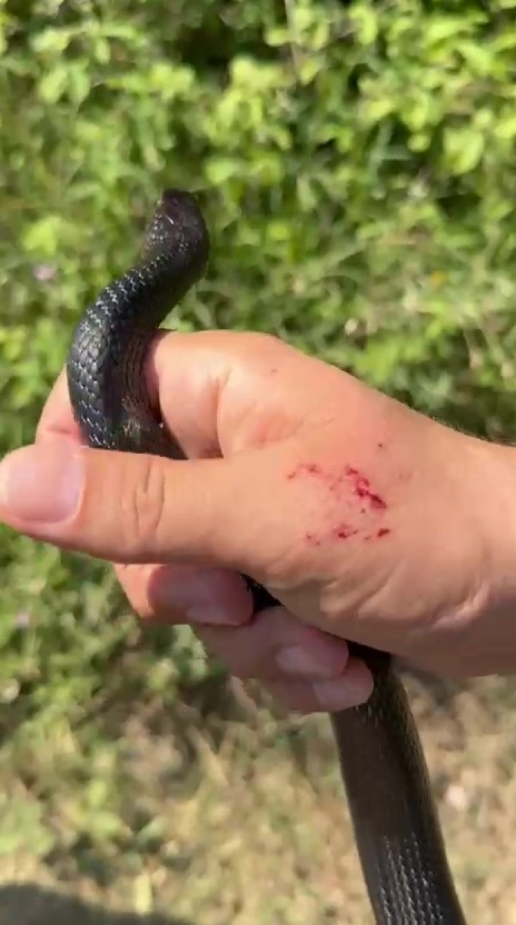 Yılanı doğaya bırakacağı esnada görüntü çeken Başer, yılan tarafından ısırıldı. O anlar ise kameraya yansıdı.