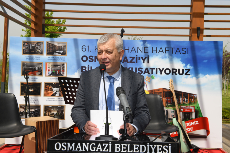 Osmangazi Belediye Başkan Yardımcısı Mutlu Esendemir, etkinlikte yaptığı konuşmada, “Ne mutlu bize ki kitap ve kütüphaneyi konuştuğumuz bu etkinlikte bir arada bulunuyoruz. Bu tarz etkinlikleri düzenliyor olmak bizler için mutluluk verici. Bu etkinliğimizi, Kütüphane Haftası olan 31 Mart-6 Nisan tarihleri arasında gerçekleştirecektik; ancak bayram tatili olduğu için ertelemek durumunda kaldık. 23 Nisan Ulusal Egemenlik ve Çocuk Bayramı haftası ile birlikte kutlamak ise ayrı bir mutluluk oldu. Osmangazi’de kütüphanelerin sayısını arttırmak adına çalışmalar yürütüyoruz. Kütüphaneye gelen okuyucu sayımız ile kütüphanelerdeki kitap sayısı her geçen gün yükseliyor. Vatandaşlarımızdan kütüphanelerde yer bulamadıklarına dair eleştiriler alıyoruz. Bu aslında bizler için gurur verici bir eleştiri. Hedefimiz ilçemizdeki tüm mahallelere kütüphaneler kazandırmak. Hem öğrencilerin hem gençlerin hem de aydınların kitaba ulaşabilmesi bizler için önemli bir hedef. Biz bu hedefimizi gerçekleştireceğiz” dedi.
