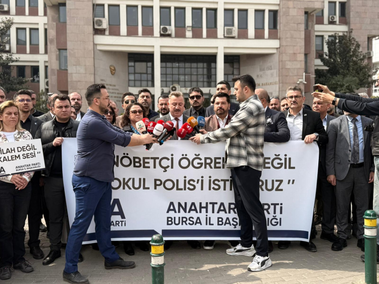 Anahtar Parti Genel Merkez Eğitim Politikaları Başkanlığı tarafından 81 ilde organize edilen basın açıklaması, Bursa Milli Eğitim Müdürlüğü önünde gerçekleşti. Açıklamaya Eğitim Politikalarından Sorumlu İl Başkan Yardımcısı Kemal Karakaya, ilçe başkanları ve il-ilçe yöneticileri ile parti mensupları katıldı.