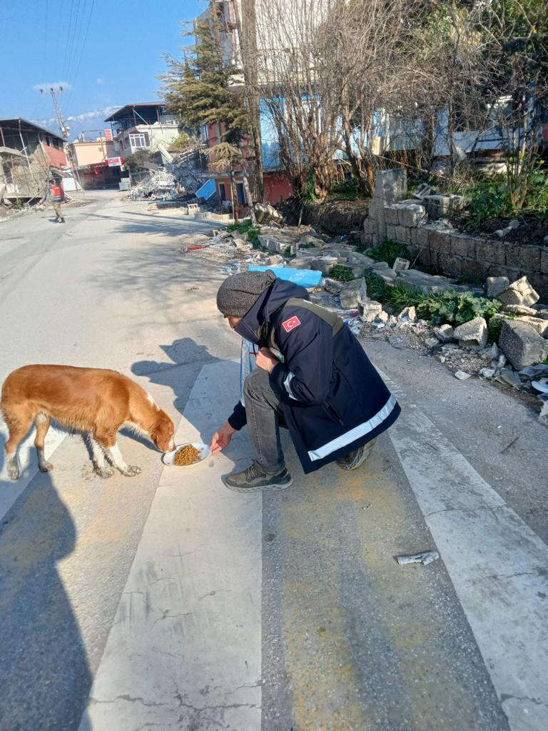 Osmangazi Belediyesi Çevre Koruma ve Kontrol Müdürlüğü ekipleri, Kahramanmaraş merkezli depremlerden etkilenen sahipsiz hayvanların aç kalmamaları adına deprem bölgesinde yemleme çalışmaları yürütüyor.