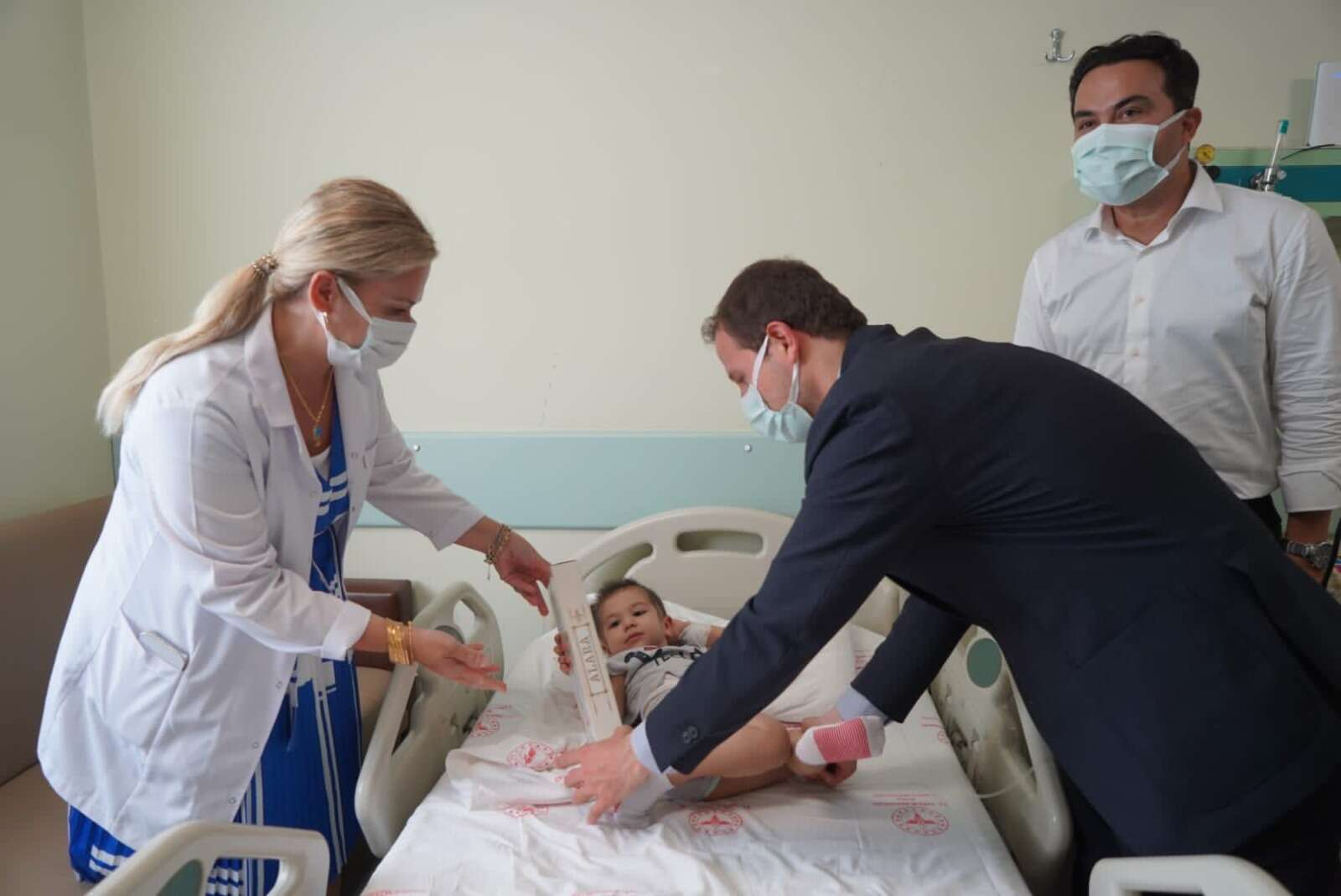 AK Parti Bursa Milletvekili Ahmet Kılıç, Yüksek İhtisas Eğitim ve Araştırma Hastanesi Pediatri Bölümü'nde tedavi gören çocukları ziyaret ederken, hastanenin yeni Başhekimi Doç. Dr. Mehmet Oğuzhan Ay’a da görevinde başarılar diledi.