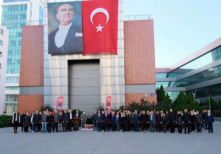 BAOB önünde saat 09.05’te Büyük Önder Atatürk’ün manevi huzurunda saygı duruşunda bulunan TMMOB Bursa İKK' ya bağlı akademik odaların yöneticileri ve çalışanları daha sonra İstiklal Marşı’nı okudular.