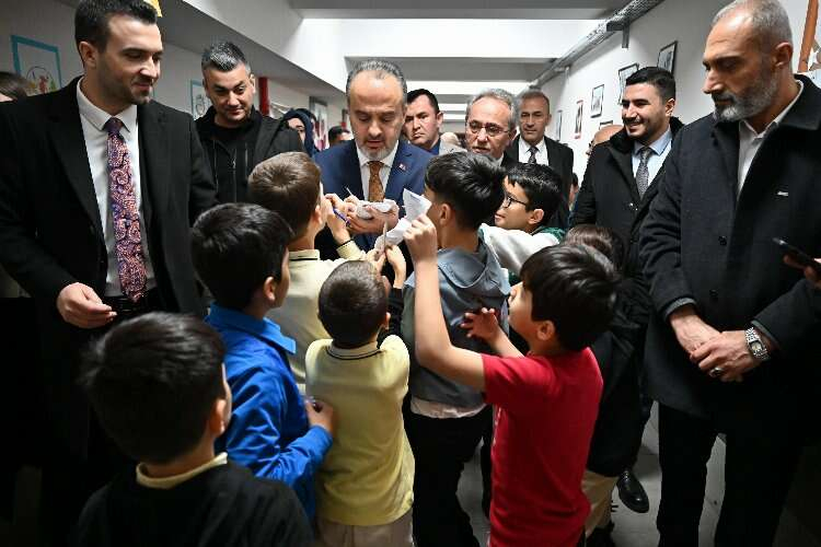 Sınıfları tek tek ziyaret eden Bursa Büyükşehir Belediye Başkanı Alinur Aktaş, öğrencilere ‘şehrimi tanıyalım’ temalı kitap ve hayvanat bahçesi bileti hediye etti. Başkan Aktaş, daha sonra velilerle bir araya geldi.