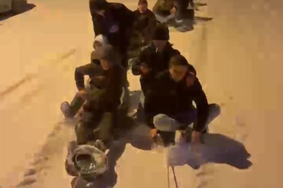 Bursa'nın Yenişehir ilçesinde bir grup genç, traktörün arkasına bağladıkları araç lastiklerine oturarak karda kaydı. Kilometrelerce kayarak ilerleyen gençlerin eğlenceli anları, saniye saniye amatör kamera ile kaydedildi.