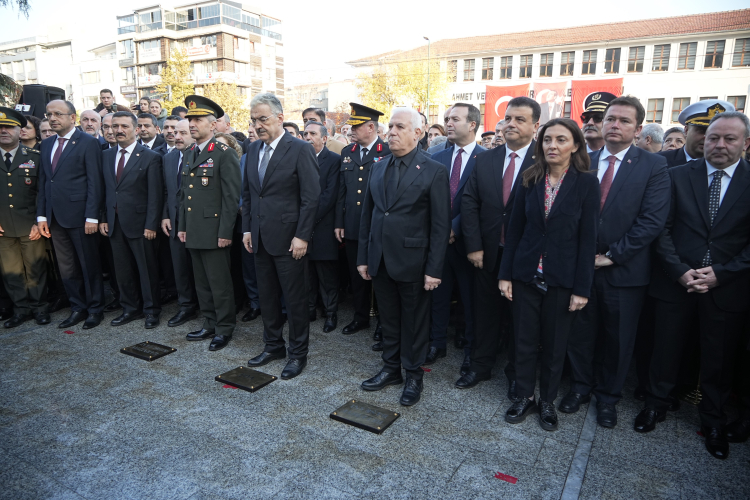Türkiye Cumhuriyet'inin kurucusu Gazi Mustafa Kemal Atatürk, ebediyete intikalinin 86. yıl dönümünde anıldı. 10 Kasım programları çerçevesinde Bursa Valiliği tarafından ilk olarak çelenk sunma töreni gerçekleştirildi. Vali Erol Ayyıldız, Bursa Büyükşehir Belediyesi Başkanı Mustafa Bozbey, Atatürk heykeline çelenk sundu. Atatürk'ün hayata gözlerini yumduğu 09.05 geçe sirenler çalmaya başlamasıyla 2 dakikalık saygı duruşunda bulunuldu.
