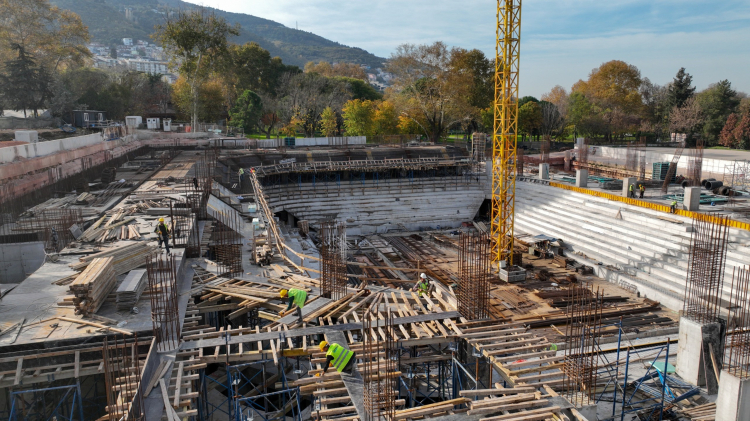 Bursa'da Atatürk Spor Salonu'nun seyirci kapasitesi 5016'ya çıkarılarak inşaatı hızla sürüyor. Başkan Mustafa Bozbey, Türkiye'ye örnek bir yapı olacağını ve dünya takımlarının izlenebileceğini belirtti. Spor tesisinin Bursalılara hatıralarını canlandırma fırsatı sunacağını söyledi.