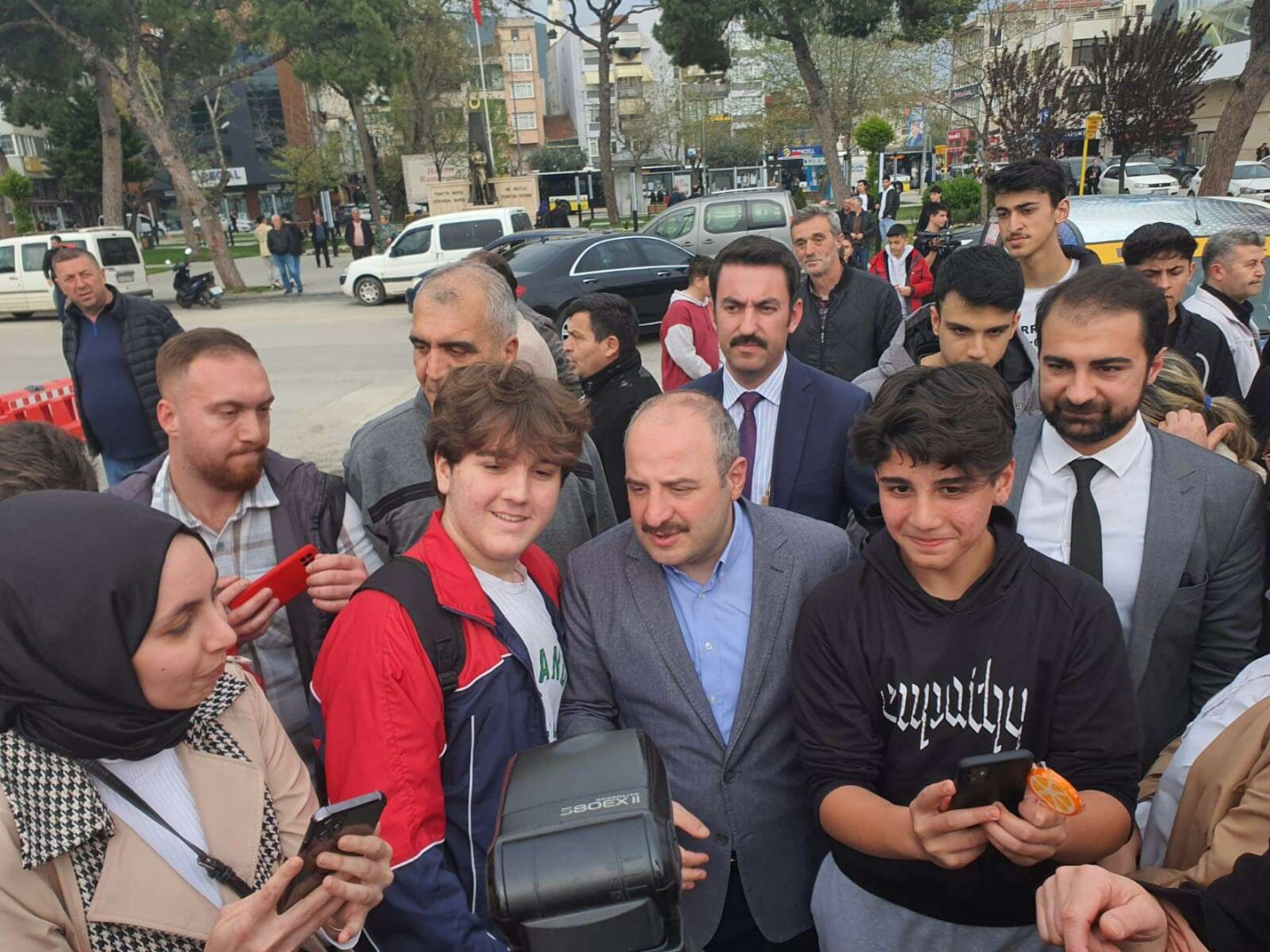 Vatandaşlarla samimi pozlar sergileyen ve akıllı cihaz ile birlikte bol bol fotoğraf çekinen Bakan Varank ise, “Sadece Türkiye'nin markası değil tüm dünyada ses getiren Türkiye'nin otomobili Togg aslında Bursalı ve Gemlik'teki fabrikada üretiliyor. Türkiye'nin yollarında vızır vızır işlemeye başlıyor. Tabii biz bunlarla yetinmeyeceğiz. Togg gibi daha nice markaları bu şehirden çıkarmak üzere çalışmaya devam edeceğiz. Yeter ki bir olalım, beraber olalım. Ay yıldızlı al bayrağımıza hizmet etmek için hep beraber hareket edelim” dedi.