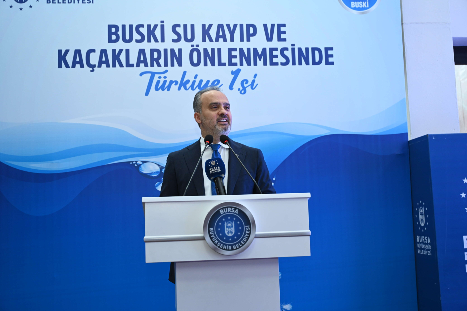 BUSKİ binasında düzenlenen, Türkiye Belediyeler Birliği Genel Sekreteri ve Cumhurbaşkanlığı Yerel Yönetimler Politikalar Kurulu Üyesi Hayri Baraçlı’nın da katıldığı törende konuşan Başkan Aktaş, bu başarının altında alın teri, emeği olan tüm BUSKİ personeline teşekkür etti. Büyükşehir’de göreve geldiği Kasım 2017’den itibaren Bursa için yılmadan, usanmadan, canla başla çalışmaya başladıklarını hatırlatan Başkan Aktaş, “Bu süreçte; 1 milyon 500 bine yakın abonemize hizmet veren 2 bin 616 BUSKİ personelimizle birlikte şehrimizin su ve kanal işlerini en iyi şekilde idare ettik. Verimlilik açısından 1000 abone başına düşen yaklaşık 1,80 çalışanımızla su ve kanal idareleri arasında en önlerde yer alıyoruz. Scada yönetim sistemiyle su kayıp kaçaklarını kontrol altına aldık. Kayıp kaçak oranlarımızı Avrupa standartlarına getirerek merkezde yüzde 20’ler seviyesine indirdik. Bunun yanında görünmeyen yatırımlar olarak tabir edilen altyapı çalışmalarına hız verdik. Yine bu dönemde; altyapıya yaklaşık 3 milyar 300 milyon TL yatırım yaptık” dedi.