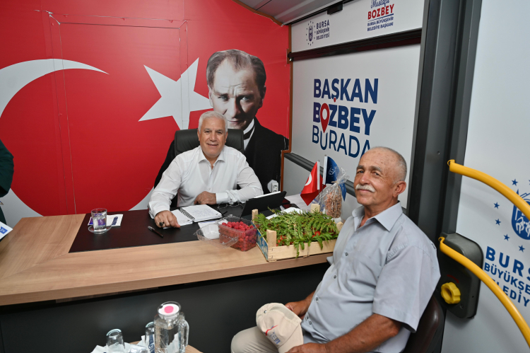 Orhaneli İtfaiye İstasyonu’nu da hizmete açan Başkan Bozbey, Cuma namazının ardından Çarşı Meydanı’nda vatandaşlarla buluştu. Makamı haline getirilen ‘Başkan Bozbey Burada’ otobüsünde Orhanelililerin talep ve önerilerini dinleyen Bozbey, Bursa’nın sorunlarını en aza indirmek adına tüm ilçe belediye başkanlarıyla dayanışma içinde çalıştıklarını dile getirdi. Tespit edilen sorunları yerinde çözüme kavuşturduklarını söyleyen Mustafa Bozbey, “Orhaneli, 4 dağ ilçemizin merkezi konumundaki önemli bir ilçemiz. Havası temiz, suyu temiz, insanları güzel bir bölgedeyiz. Hepimiz 31 Mart’ta Bursa adına bir sorumluluk üstlendik. Biz bütüncül düşünüyoruz. Tüm belediye başkanlarımızla Bursa’nın sorunlarını en aza indirmek adına dayanışma içinde çalışıyoruz. Muhtarlarımızın yıllardır çözülmesi gereken sorunlarının çözülmemiş olması bizi üzdü. Bu sorunların çözüme ulaşması için mücadele edeceğiz. Bazı mahallelerimizde altyapı, içme suyu ve kullanma suyu sorunları tespit ettik. BUSKİ tarafından yürütülmesi gereken projeler var. DSİ bölge müdürümüzle de istişare edeceğiz. Kapalı sistem sulamayı mutlaka bitirmeleri gerekiyor. Bu gerçekleştirildikten sonra tarımsal faaliyetlerle ilgili önemli bir mevzi elde etmiş olacağız” dedi.