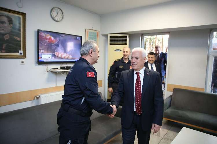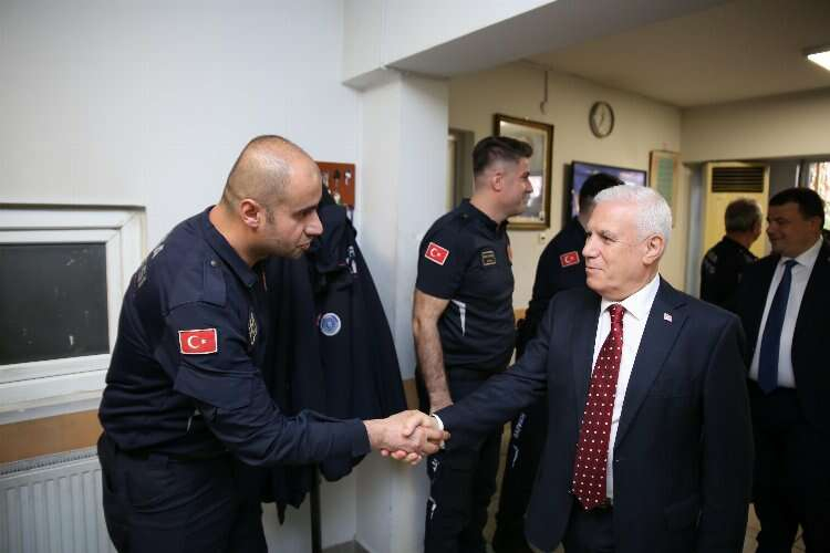 Arkadaşlarımıza bugüne kadar yapmış olduğu hizmetler için ayrıca teşekkür ederim. Arkadaşlarımız zor görevlerde bulunuyorlar. Bayram günü Bursa için hizmet ediyorlar. İtfaiye, zabıta, güvenlik ve mezarlıklarda çalışan ekiplerimiz, farklı birimlerdeki ekiplerimiz gece-gündüz, bayram demeden çalışıyorlar. Böyle günlerde ailelerinden ayrı kalarak hizmet etmek için çalışıyorlar. Özveriyle yapılan işler. Bütün çalışma arkadaşlarımıza özverili çalışmalarından dolayı teşekkür ediyorum. Bu ziyaretlerimizi geleneksel hale getireceğiz. Sahada farklı noktalarda hizmet eden bütün arkadaşlarımızı ziyaret edeceğiz. Bütün mesai arkadaşlarımızın Ramazan Bayramı’nı tebrik ederim” diye konuştu.