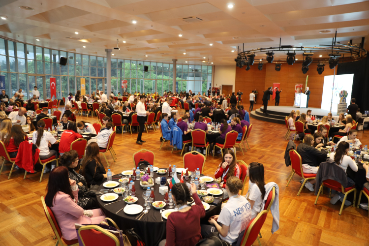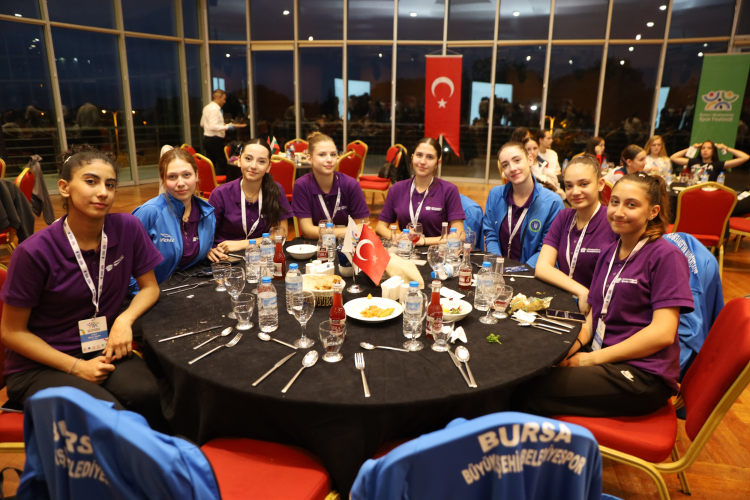 Bursa Uluslararası Spor Festivali kapsamında düzenlenen Kardeş Şehirler Voleybol Turnuvası’na Bursa’nın kardeş kentleri olan Kosova’nın Priştina, Finlandiya’nın Oulu, Moldova’nın Çadır Lunga, Ukrayna’nın Vinnitsa, Bulgaristan’ın Plevne ve Veliko Tarnova, Belarus’un Mogilev, Kuzey Kıbrıs Türk Cumhuriyeti’nin Lefkoşa, Slovakya’nın Kösice kentlerinden katılan genç sporcular ve antrenörleri, Başkan Mustafa Bozbey ve eşi Seden Bozbey ile yemek organizasyonunda buluştu.