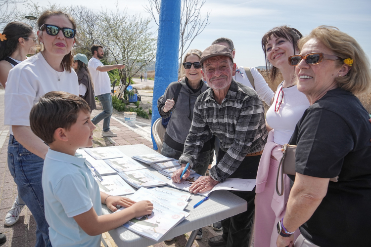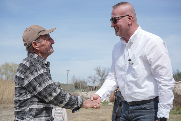 Karacabey Belediye Başkanı Fatih Karabatı, balıkçı Adem amca ve Yaren leyleği Eskikaraağaç leylek köyünde ziyaret etti.