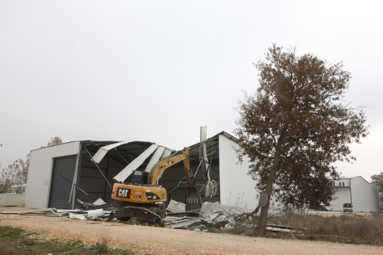 Çevik kuvvet ve zabıta ekiplerinin de güvenlik önlemi aldığı yıkımda, depo kullanılamaz hale getirildi.