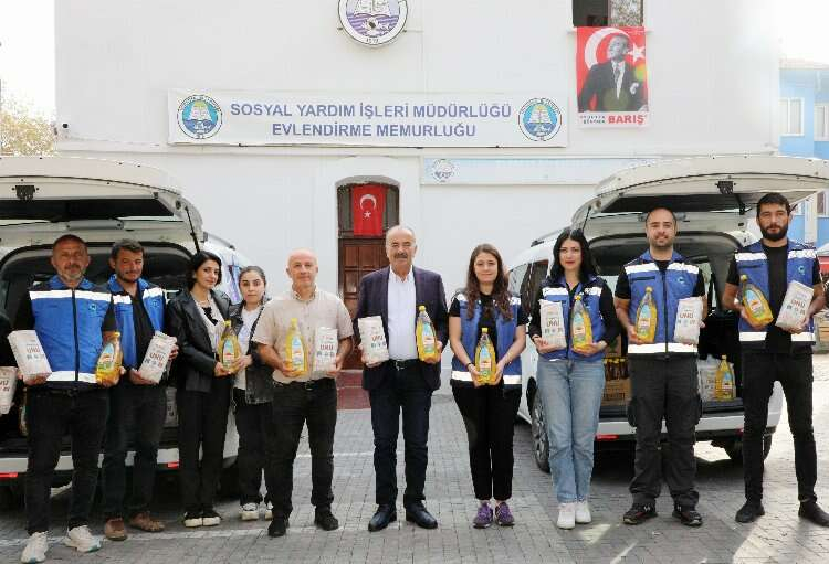 Ekimi yapılan buğdaylardan elde edilen unlar ve aynı arazilerde dönüşümlü olarak ekimi gerçekleştirilen ayçiçekleri de yağ olarak ihtiyaç sahibi ailelerin soflarına ulaştırılmaya başlandı.