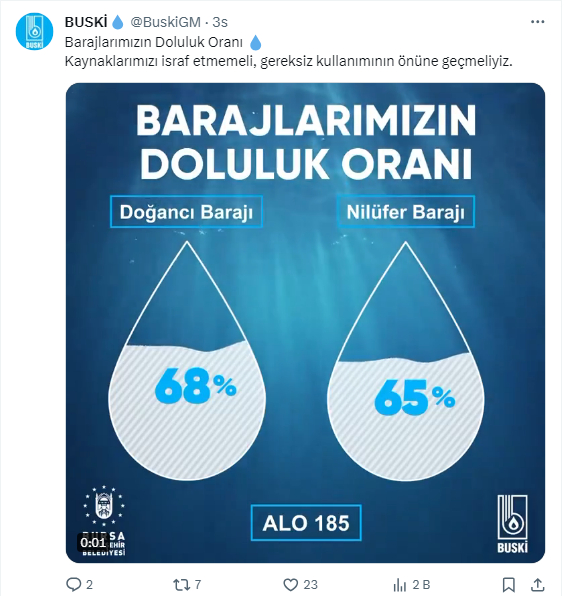 BUSKİ, Bursa’nın içme suyu ihtiyacını karşılayan Doğancı ve Nilüfer barajlarının doluluk oranını açıkladı.
