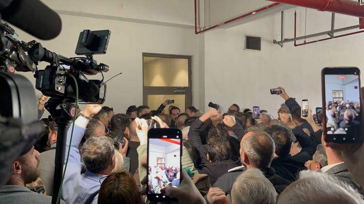 Belediyenin arka otopark girişinin de kapatıldığı sırada, meclis toplantısını takip etmek isteyen yaklaşık 200 kişilik CHP’li grup, otopark bölümünden üst kata çıkan kapının camını kırarak içeri girdi. Bunun üzerine polis gruba müdahale etti.