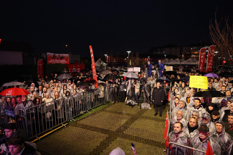 Bursa Büyükşehir Belediye Başkanı Mustafa Bozbey’in gözaltına alınmasının ikinci gününde, binlerce Bursalı sağanak yağmura aldırış etmeden belediye binası önünde toplandı. CHP Bursa İl Başkanlığı’nın çağrısıyla bir araya gelen kitle; milletvekilleri, belediye başkanları ve sivil toplum kuruluşu temsilcileriyle birlikte 'İradene Sahip Çık' mesajı verdi. İl Başkanı Nihat Yeşiltaş yaptığı sert açıklamada, 'Tehdit siyaseti çökecek, korku düzeni yıkılacak' dedi.
