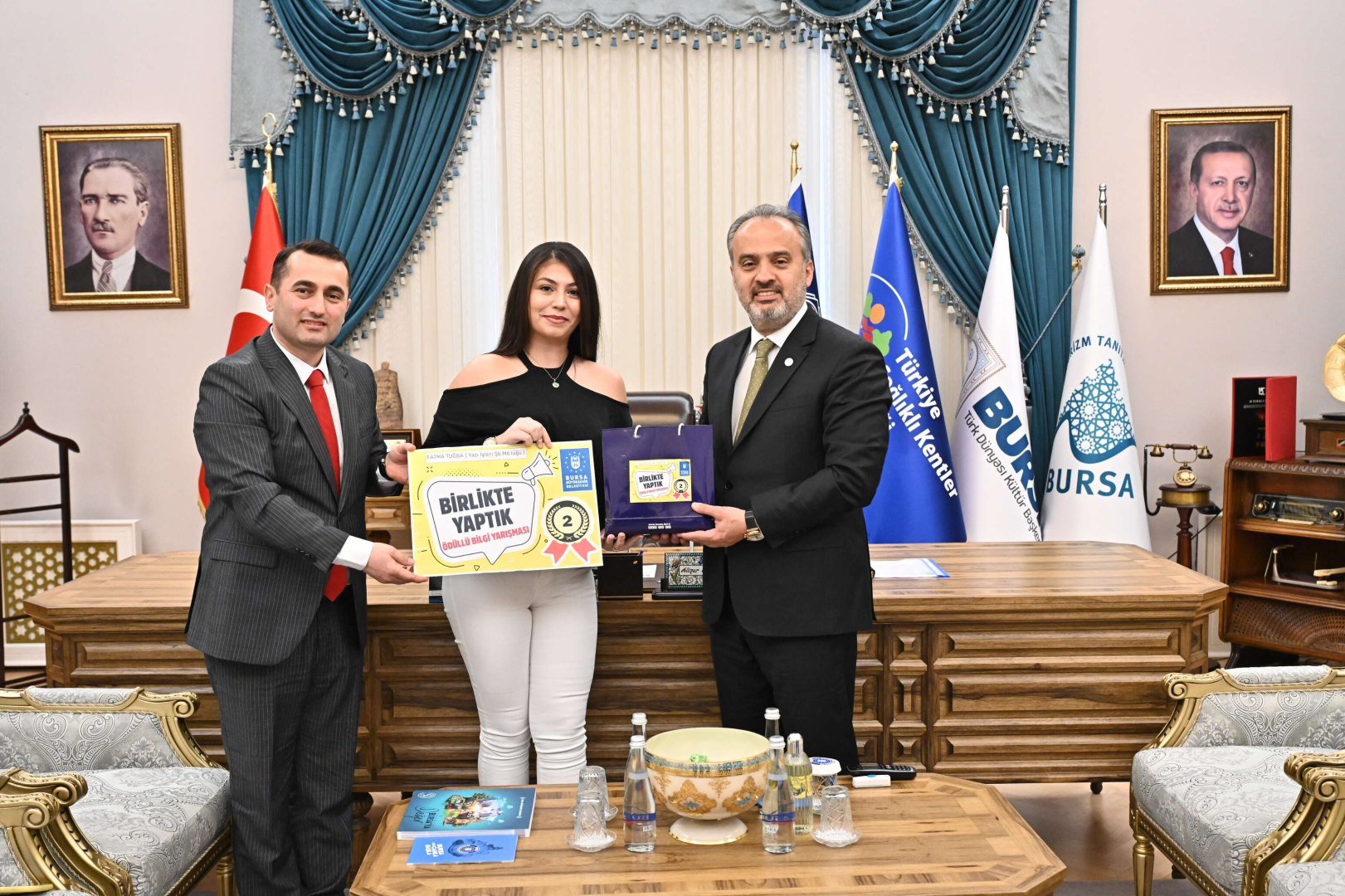 Bursa’nın daha yaşanılabilir bir şehir olması adına Türkiye’ye örnek olan projeleri bir bir hayata geçirerek vatandaşlarla buluşturan Büyükşehir Belediyesi, kurum için motivasyon çalışmalarını da sürdürüyor. Son 5 senede yapılan proje ve faaliyetlerin yer aldığı ‘Birlikte Yaptık’ bilgi yarışmasında soruları en kısada sürede cevaplayan personeller, Büyükşehir Belediye Başkanı Alinur Aktaş tarafından ödüllendirildi.