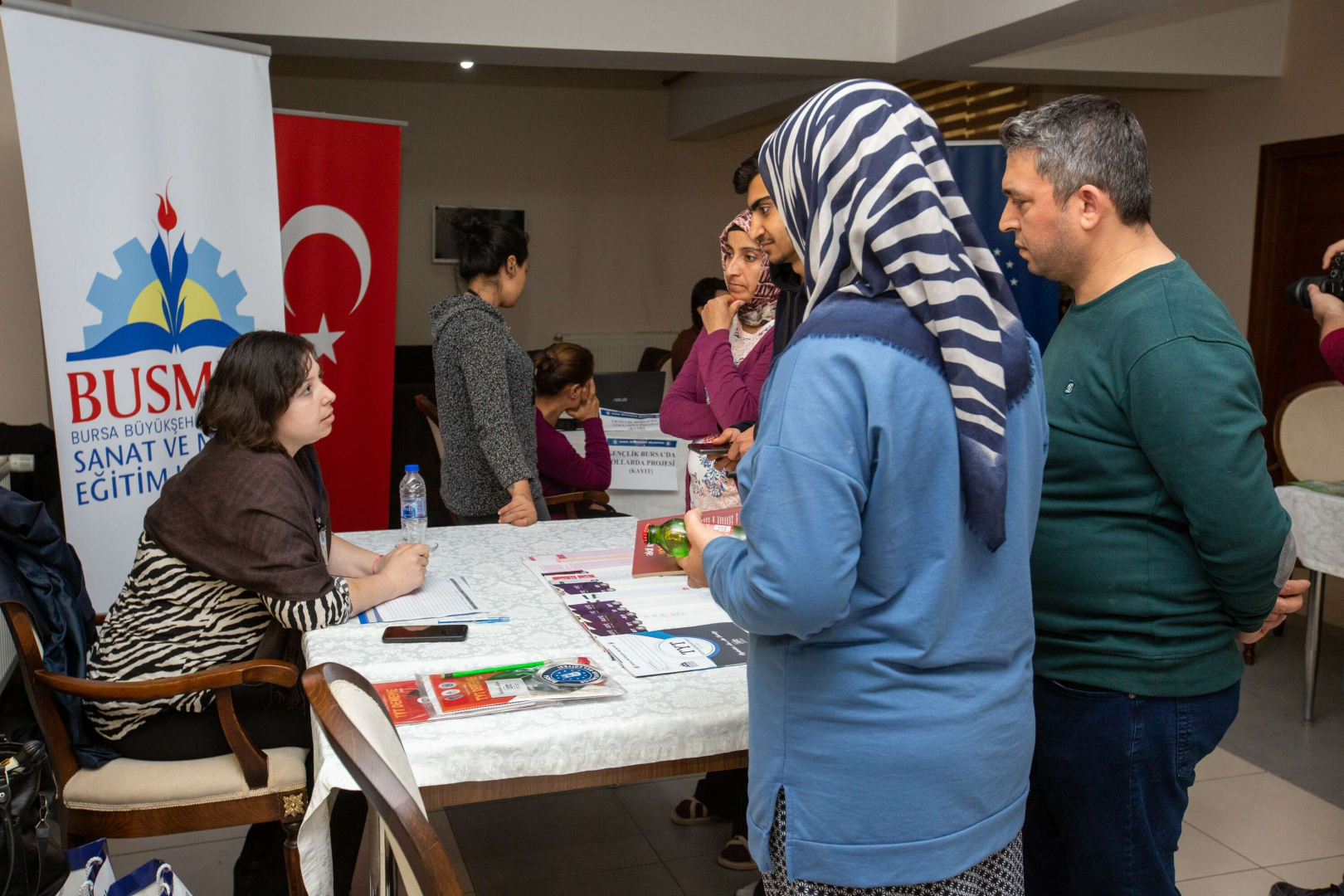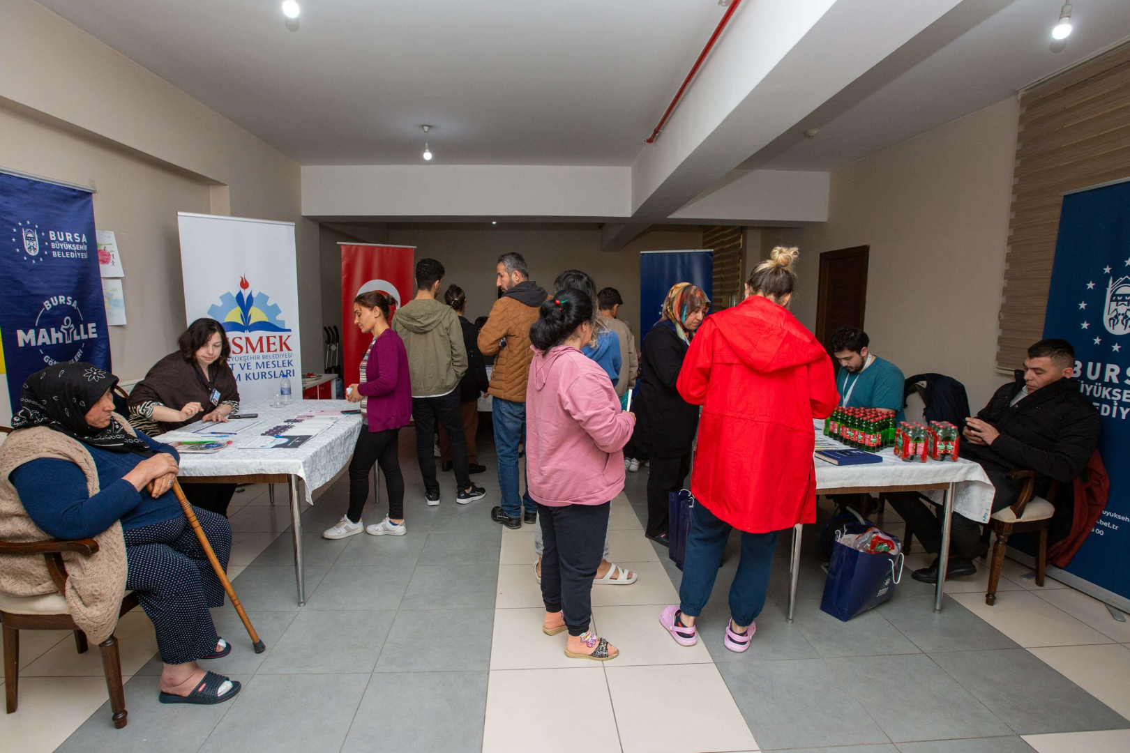 Nilüfer Hatun Kız Öğrenci Yurdu’nda kurulan stantlara da depremzedeler büyük ilgi gösterdi. Geçici de olsa Bursa’ya yeni bir yaşama başlayan afetzedeler, yararlanmak isterikleri tüm hizmetler için kolaylıkla başvurularını yaptı.