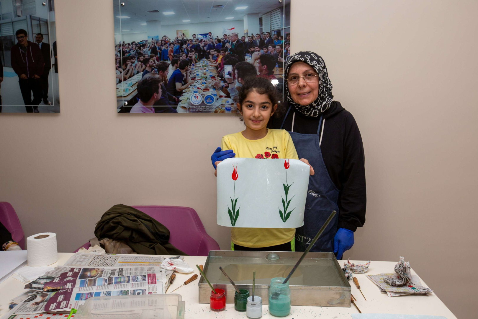 Başvuru sırasında afetzedeler çarkıfelek bilgi yarışması ile hem keyifli zaman geçirdi hem de Bursa’yı daha yakında tanıma imkanı buldu. BUSMEK tarafından kurulan ebru sanatı stantı da özellikle küçük depremzedelerin ilgi odağı oldu. Afetzede çocuklar hocaları ile birlikte ebru sanatı çalışmalarına katıldı. Ebru çalışmalarını kurutmaya alırken fotoğraflanan çocukların bir nebze de olsa yüzleri güldü.