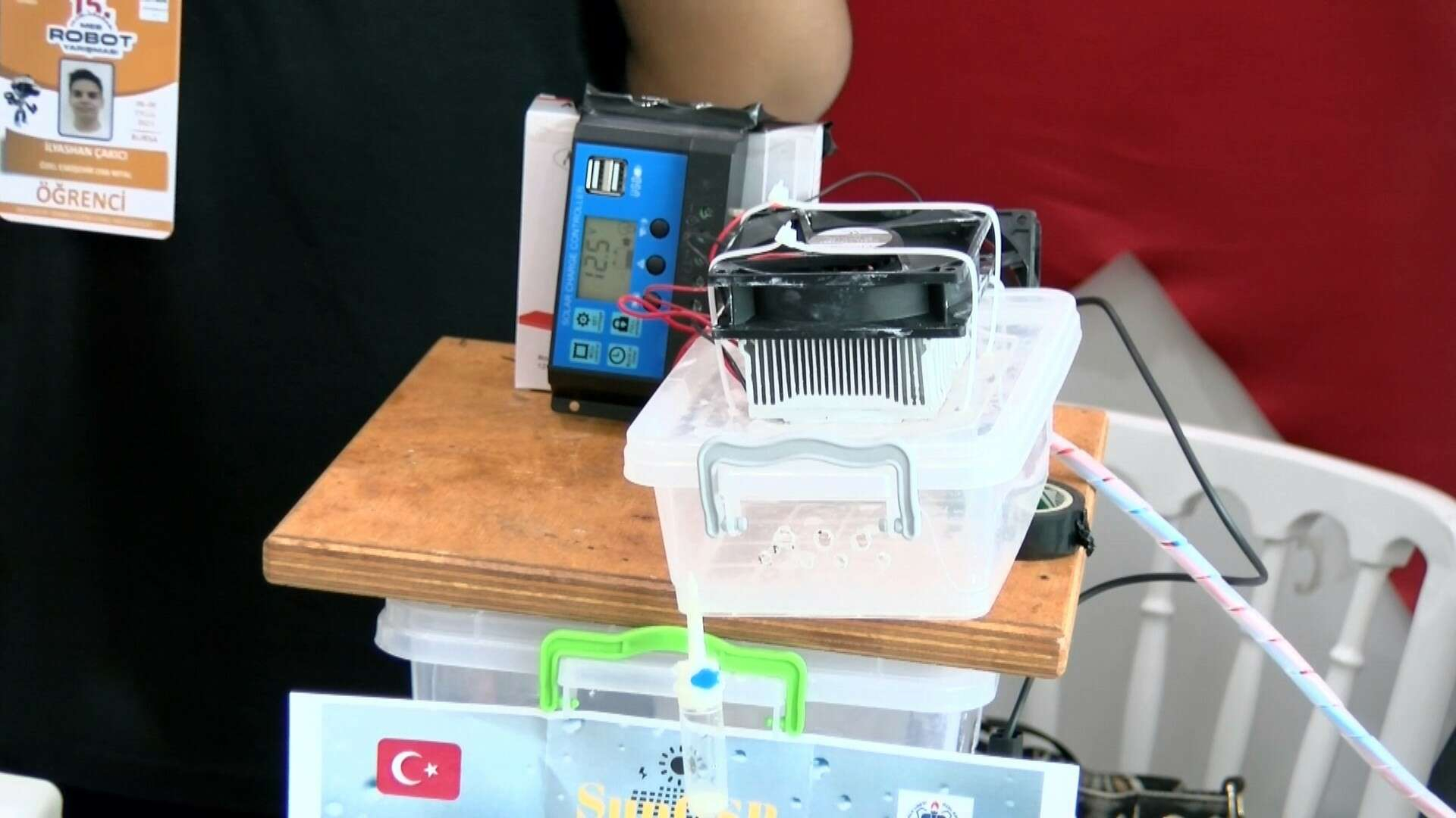Bursa’da gerçekleştirilen 15. Uluslararası Robot Yarışması’nda Türkiye’nin birçok lise öğrencilerinin projeleri yer aldı. Özel lise öğrencileri İlyashan Çakıcı, Yahya Niyazi Kirli ve 4 arkadaşı ile birlikte geliştirdikleri sistemle güneşten elde ettikleri enerjiyle saf su elde etti. 6 öğrencinin geliştirdiği projede güneş panelinden alınan enerjiyle dışarıdan alınan hava ile içerideki soğuk hava birleştirilerek su üretiliyor.