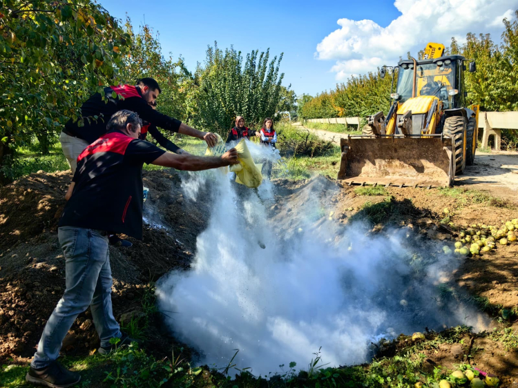 Bursa İl Tarım ve Orman Müdürlüğü denetim ekipleri tarafından rutin olarak uygulanan hasat öncesi pestisit denetimi dahilinde ülkemizde yasaklı bulunan zirai ilaç kullanımının tespit edildiği 40 ton armut imha edildi.