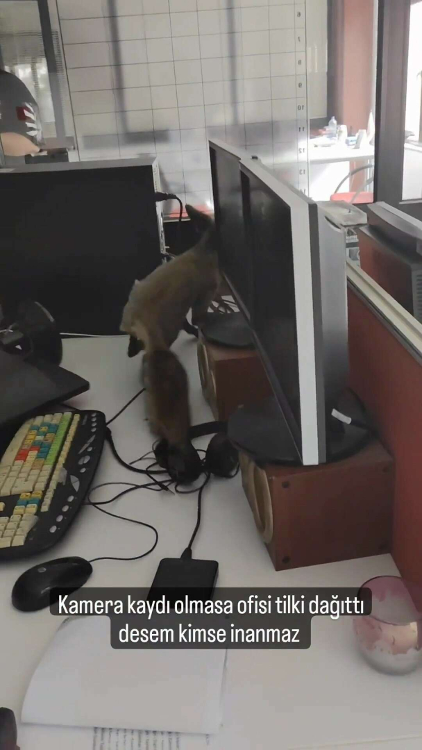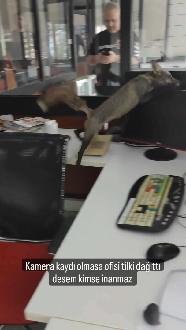 Bursa'da karnı acıkan tilki, soluğu Line TV'nin binasında aldı. Güvenlik kameraları tarafından televizyon binasına girişi ve çıkışı kaydedilen tilki ofis içerisinde her yeri birbirine kattı.