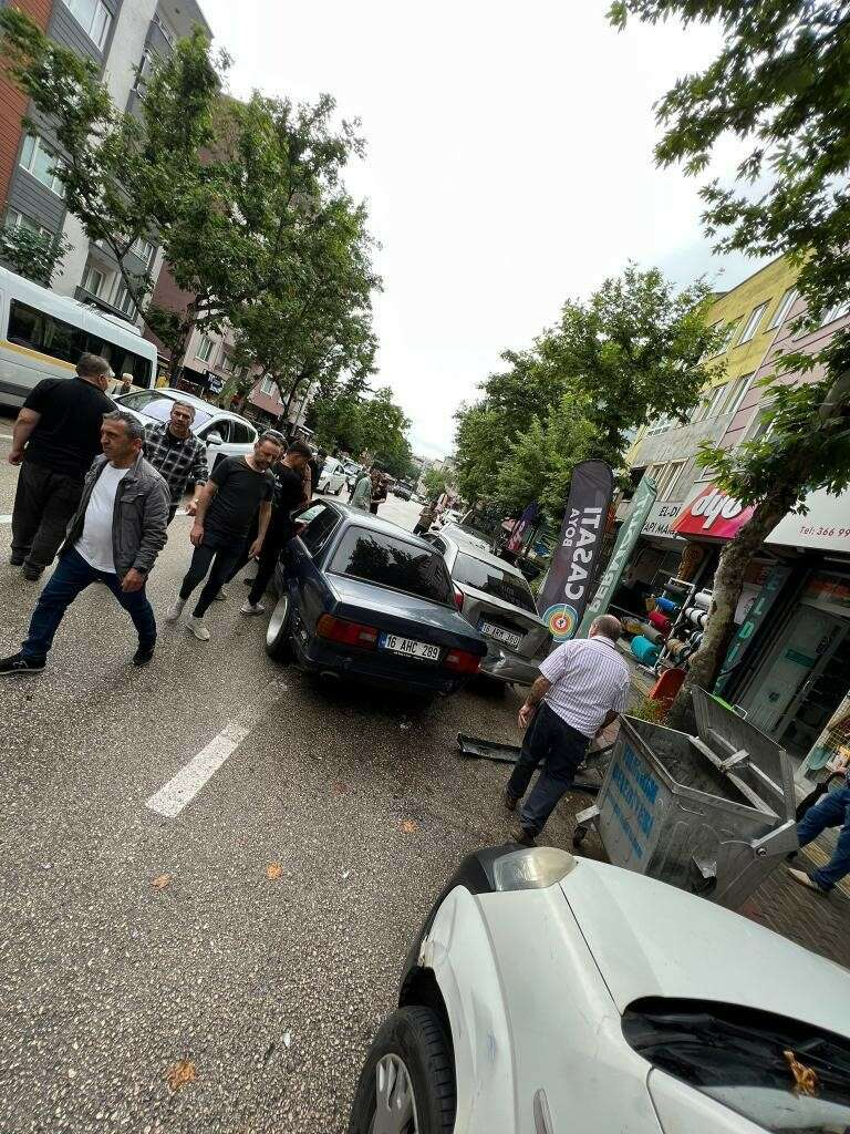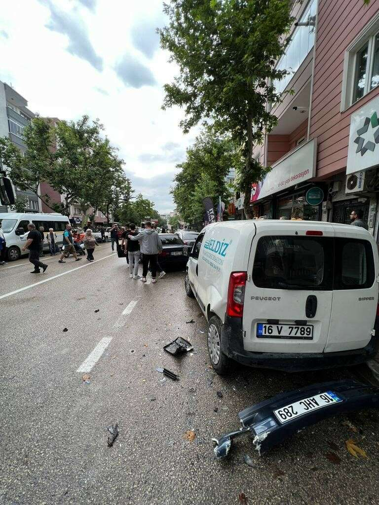 İddiaya göre, 16 AHC 289 plakalı araç sürücüsü, aracının kontrolünü kaybedince kendi etrafında dönüp, cadde üzerinde park halinde bulunan 16 V 7789, 16 ARM 360 ve 16 ANB 529 plakalı araçlara çarptı.
