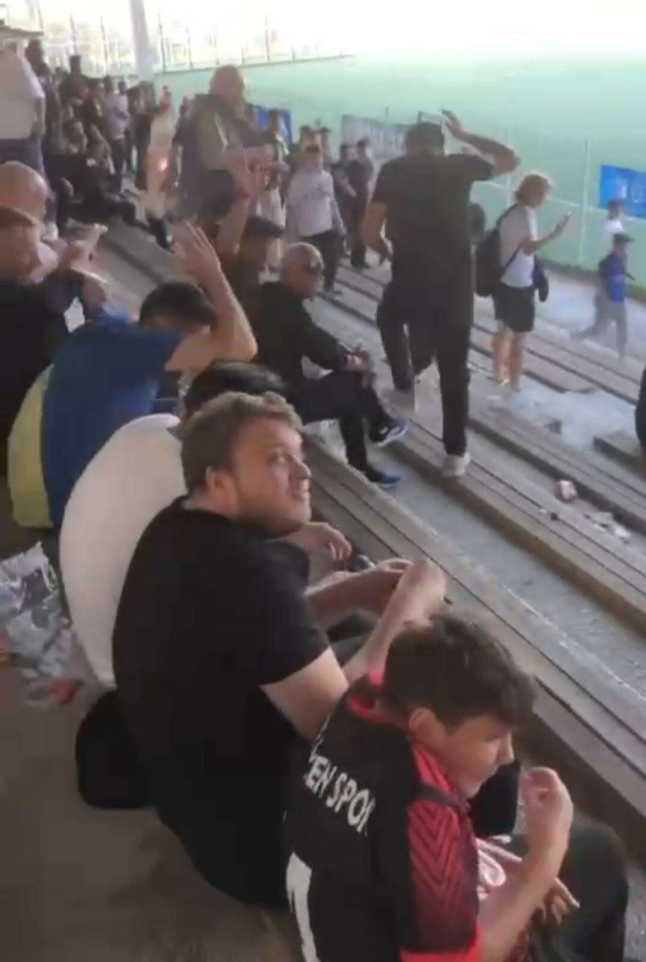 İki takımında kıyasıya oynadığı maçta 2-2 skorla sonuçlanırken, futbolcular arasında gerginlik yaşandı. Artan tansiyon sonrası iki takımın tribünleri bir anda birbirine girmeye başladı. Taraftarlar arasında başlayan kavgada su şişeleri ve taşlar havada uçuştu.