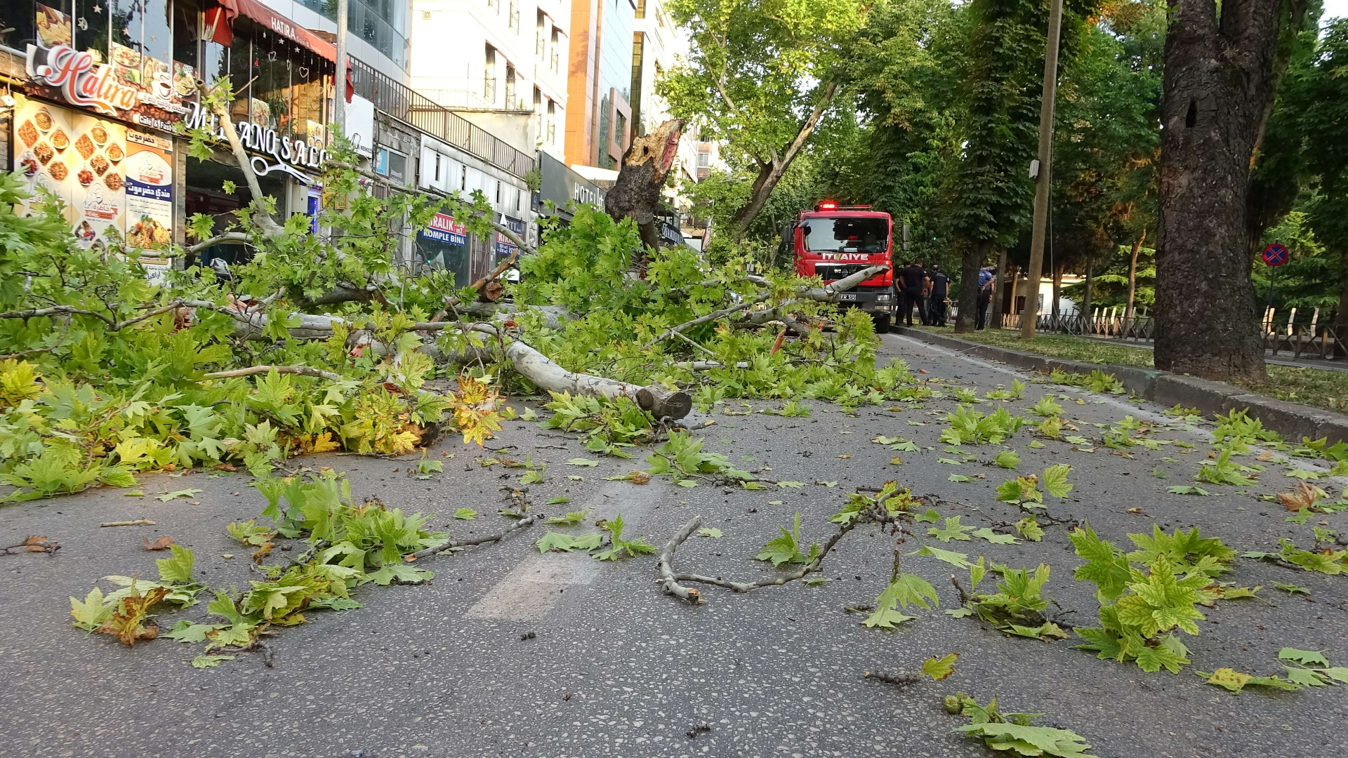 Polis tedbir için caddeyi trafiğe kapattı. Bölgeye güvenlik şeridi çeken polis ekipleri önlem aldı. Çınar ağacının parçalara ayrılarak kaldırılmasından sonra cadde trafiğe açıldı.