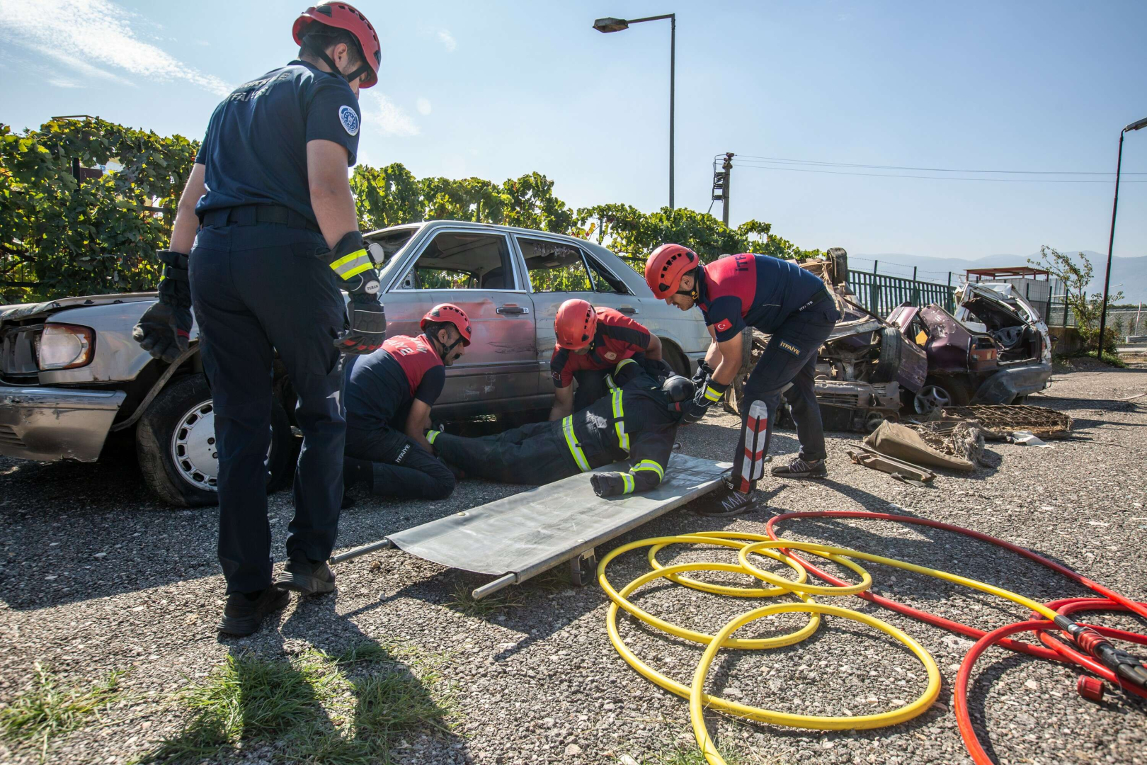 Eğitim merkezinde yangına müdahale, trafik kazanında araçta sıkışan yaralının kurtarılması, halatla yüksekten inme gibi zorlu eğitimleri gören itfaiyeciler, bunun yanı sıra Uludağ Softaboğan ve Mustafakemalpaşa Suuçtu şelalesinde yaralı kurtarma ve Karacabey boğazında da temel cankurtaran eğitimlerine katıldı.