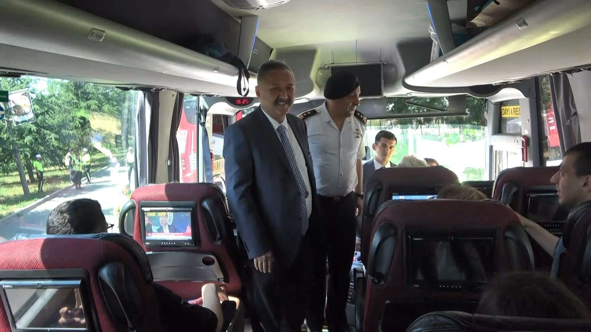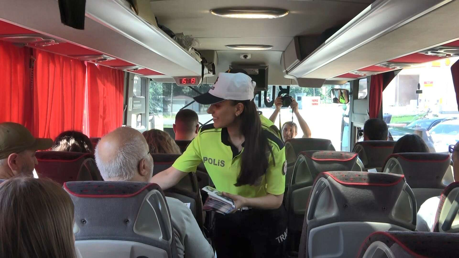 Bursa İl Jandarma Komutanı Tekin Aktemur ve Bursa İl Emniyet Müdürü Tacettin Aslan, 9 günlük bayram tatili için yola çıkan vatandaşları uğurladı. Otobüsün içinde dikkatli olmaları ve emniyet kemeri takmaları konusunda uyarıda bulunan polis ve jandarma ekipleri, aynı zamanda yolculara hediye ve broşür dağıttı. Bayram tatili boyunca 815 polis ile 186 jandarma personeli sahada görev yapacak. Öte yandan, 95 uygulama noktası kurulurken 1 helikopter ve dron ile havadan güvenlik sağlanacak.