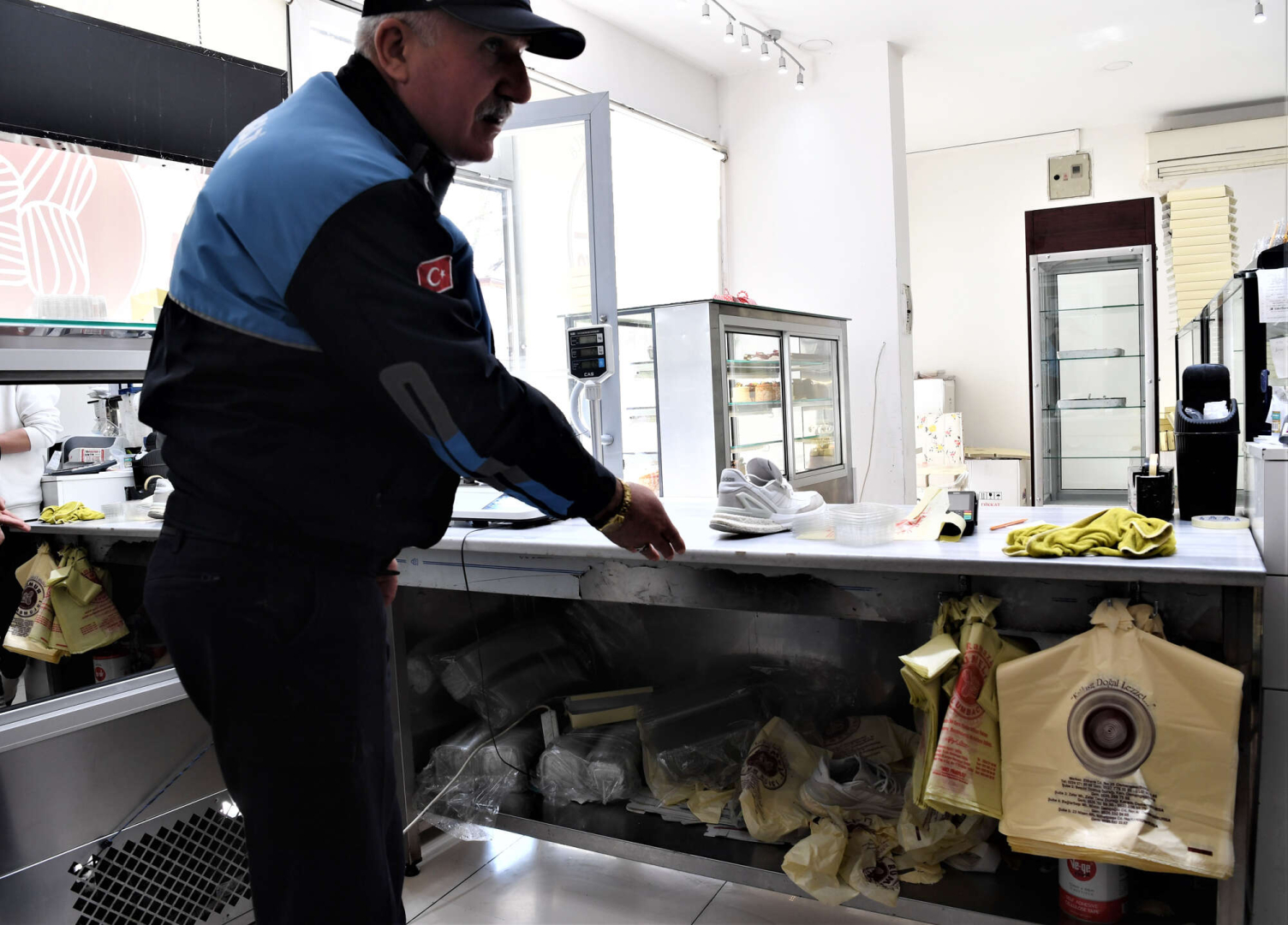 Bir işletmede ise tezgâhın altında ayakkabı bulundu. Kurallara uymayan işletmelere para cezai işlem uygulanırken, hijyen kurallarına dikkat edilmesi konusunda uyarılarda bulunuldu.