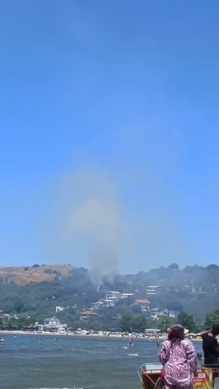Bursa'nın Mudanya ilçesinde ağaçlık alandan yükselen alevler, sahilde denize girenlerin yüreğini ağzına getirdi. Yangına müdahale ediliyor.