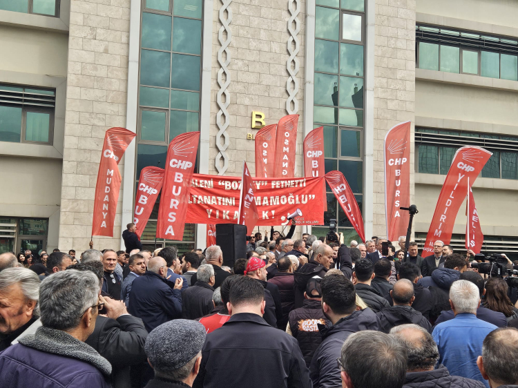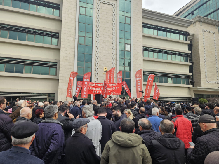 Bursa’da Bursa Büyükşehir Belediye Başkanı Mustafa Bozbey’in gözaltına alınmasının ardından, Cumhuriyet Halk Partisi Bursa İl Örgütü’nün çağrısıyla çok sayıda partili Bursa Büyükşehir Belediyesi binası önünde bir araya geldi.
