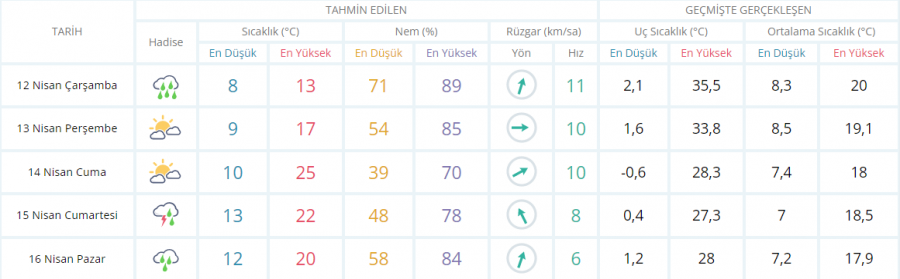 5 GÜNLÜK HAVA TAHMİNİ