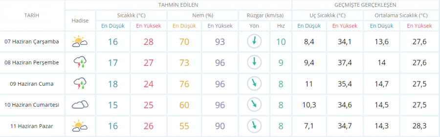 5 GÜNLÜK TAHMİN