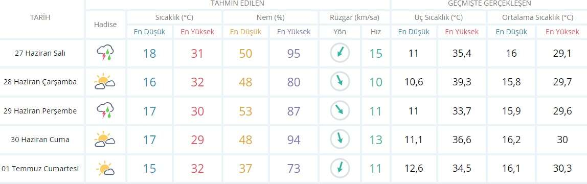 BURSA İÇİN 5 GÜNLÜK TAHMİN
