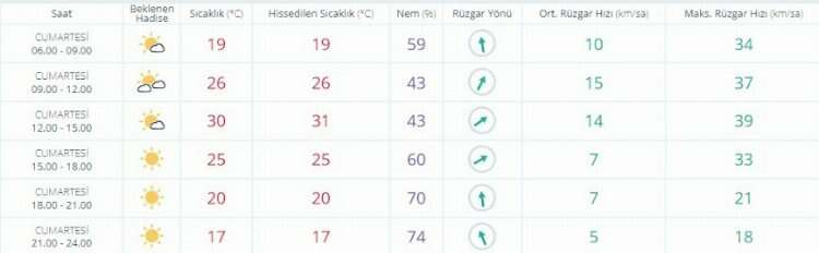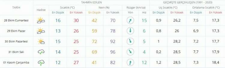 Parçalı ve az bulutlu, kıyı kesimlerinin yer yer çok bulutlu ve yerel olmak üzere sağanak yağışlı geçeceği tahmin ediliyor. Sabah ve gece saatlerinde iç kesimlerde yer yer pus ve sis bekleniyor.