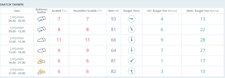 Öğle saatlerinden itibaren yağış yerini çok bulutlu bir gökyüzüne bırakırken, sıcaklık en yüksek seviyesi olan 11 dereceye çıkacak. Ancak bu saatlerde rüzgar hızını artırıyor: