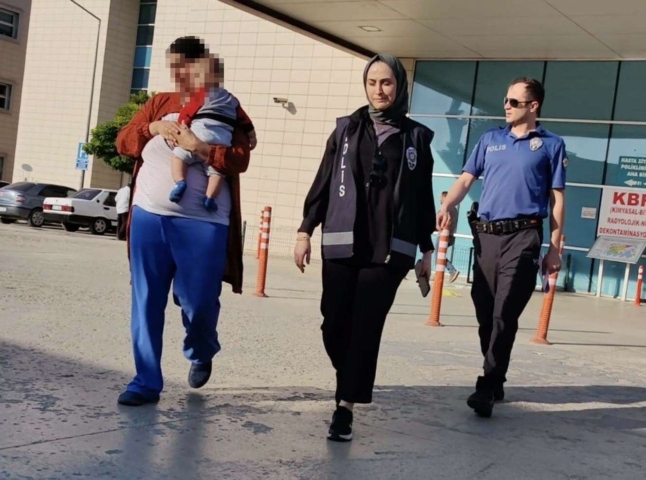 Kadın, kucağında 6 aylık bebeğiyle cezaevine götürüldü.