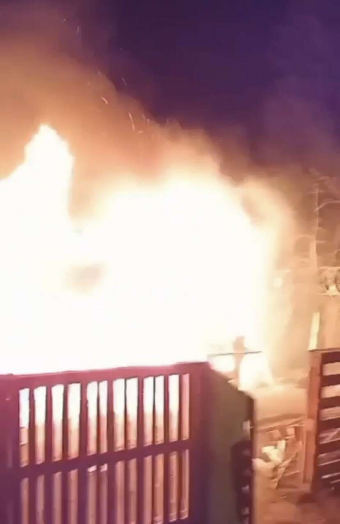 Çiftliğin alev alev yanma anı cep telefon kamerasına yansıdı.