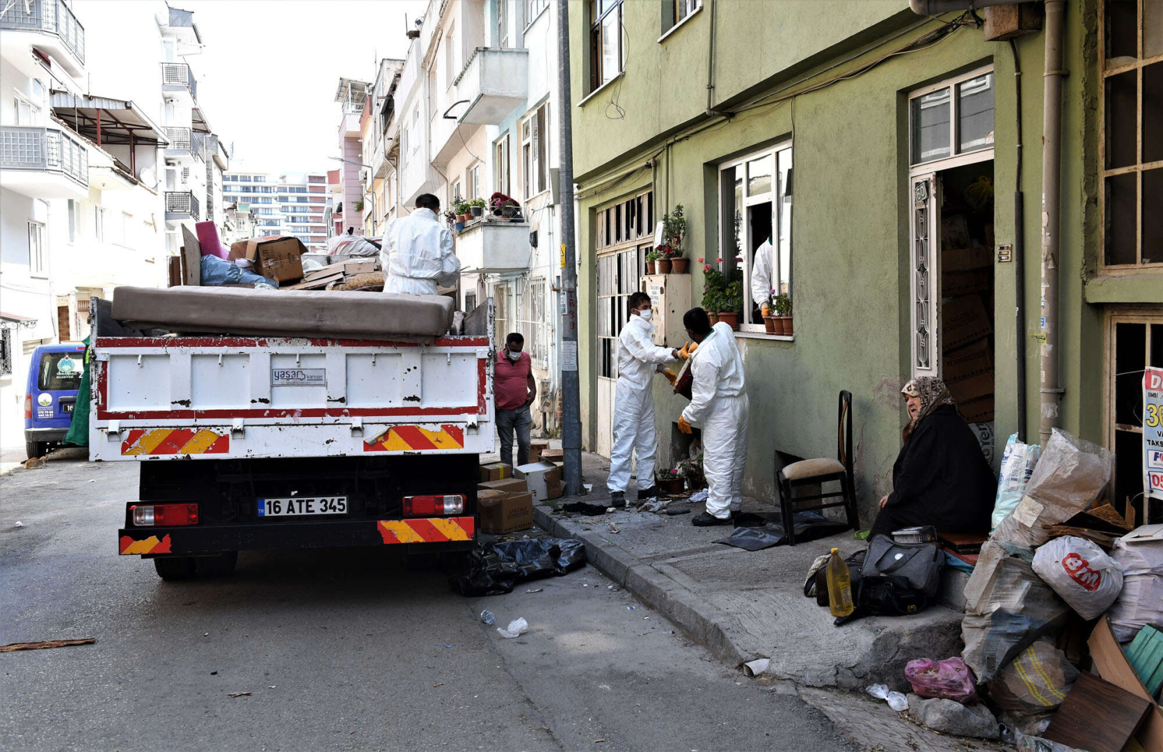 Bursa'da çöp evden 2 kamyon eşya çıktı