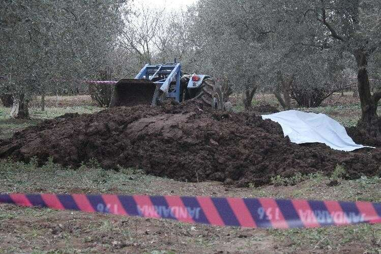 Edinilen bilgiye göre, Yeniköy Mahallesi’nde çiftlikten hayvan gübresi sipariş eden B.S., traktör kepçeyle zeytin ağaçlarının altına gübre serperken kepçeye bir şeyin takıldığını fark etti. Traktörden inen B.S., gübrenin arasında bir ceset görünce durumu jandarma ekiplerine bildirdi.