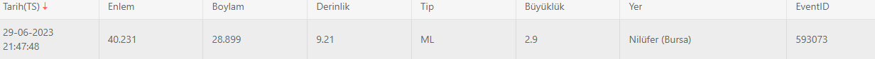 Kandilli Rasathanesi de depremin merkez üssünün Nilüfer Tahtalı olarak kaydedildiğini, büyüklüğünü ise 3,1 olarak açıkladı.