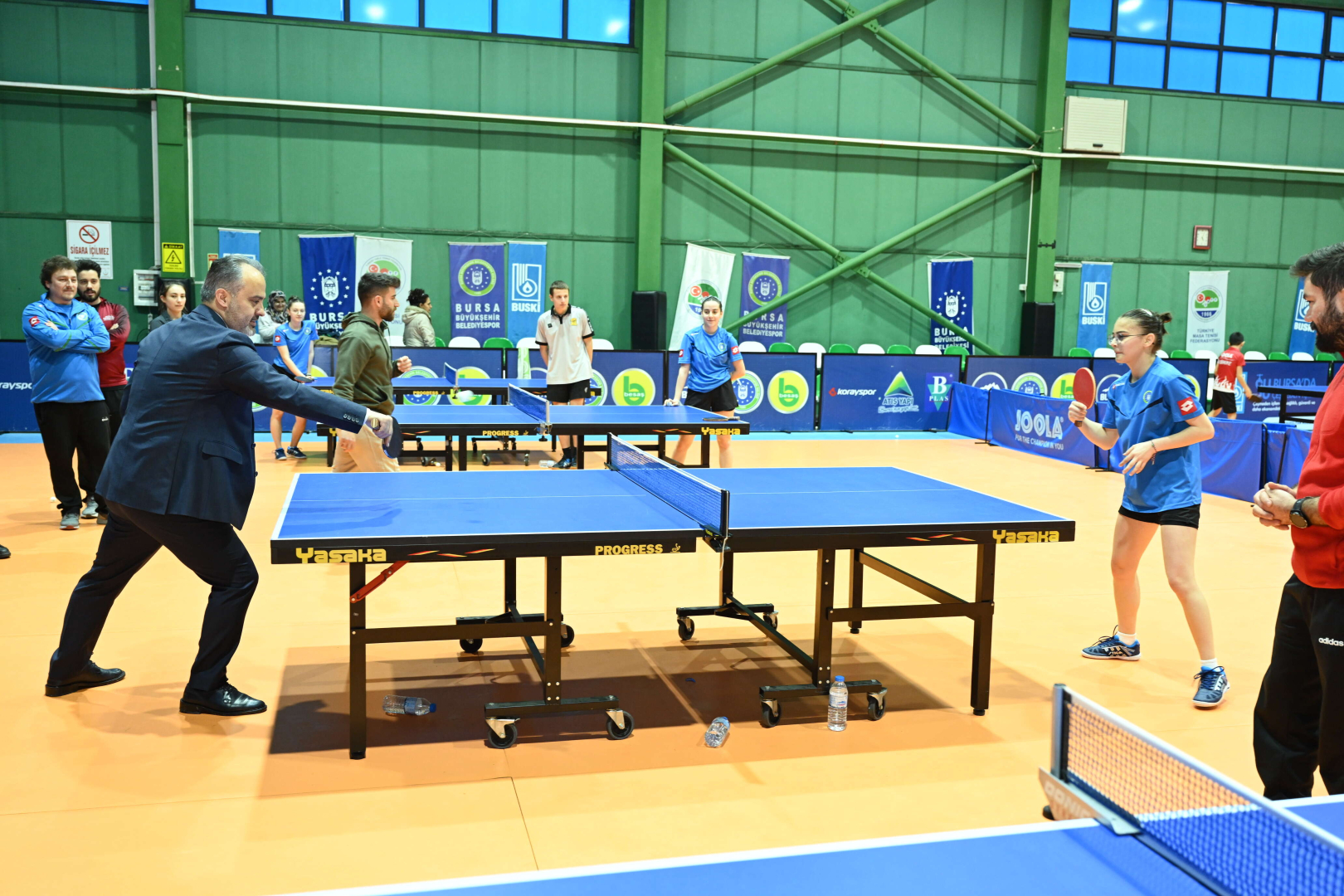 Bursa Büyükşehir Belediye Başkanı Alinur Aktaş da genç sporculara moral vermek için idman saatinde onları ziyaret etti. Sporcularla masa tenisi oynayıp, onlara baklava ikram eden Başkan Aktaş, “Acımız çok büyük ama bir taraftan da yaraları sarmaya çalışıyoruz. Depremzede kardeşlerimize sahip çıkma noktasında elimizden gelen gayreti ortaya koyuyoruz. Deprem bölgesindeki 5 ilden gelen 5 antrenör ve 20 lisanslı sporcumuzu Bursa’da misafir ediyoruz. Bizim sporcularımızla beraber onları diri tutmaya, acılarını biraz olsun hafifletmeye çalışıyoruz. Çocuklarımızın mutluluğunu ve heyecanını görmek beni mutlu etti. Onların acılarını dindirmek, moral vermek, yaralarını sarmak bizim en önemli görevimiz” dedi.