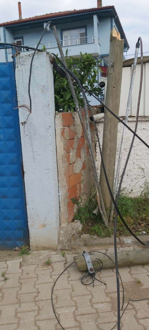 Mahalle sakini Ömer Kabuk, “Tır internet firmasına ait direğe çarptı. Kablolar yere düştü. Evlerimiz internetsiz kaldı. Firma yetkililerinin sesimizi duymasını istiyoruz” diye konuştu.